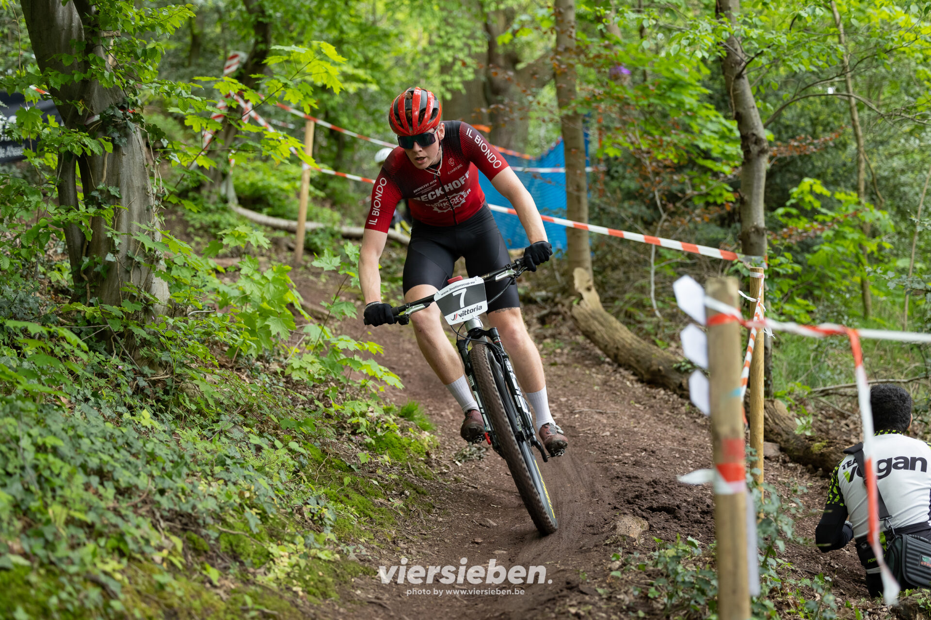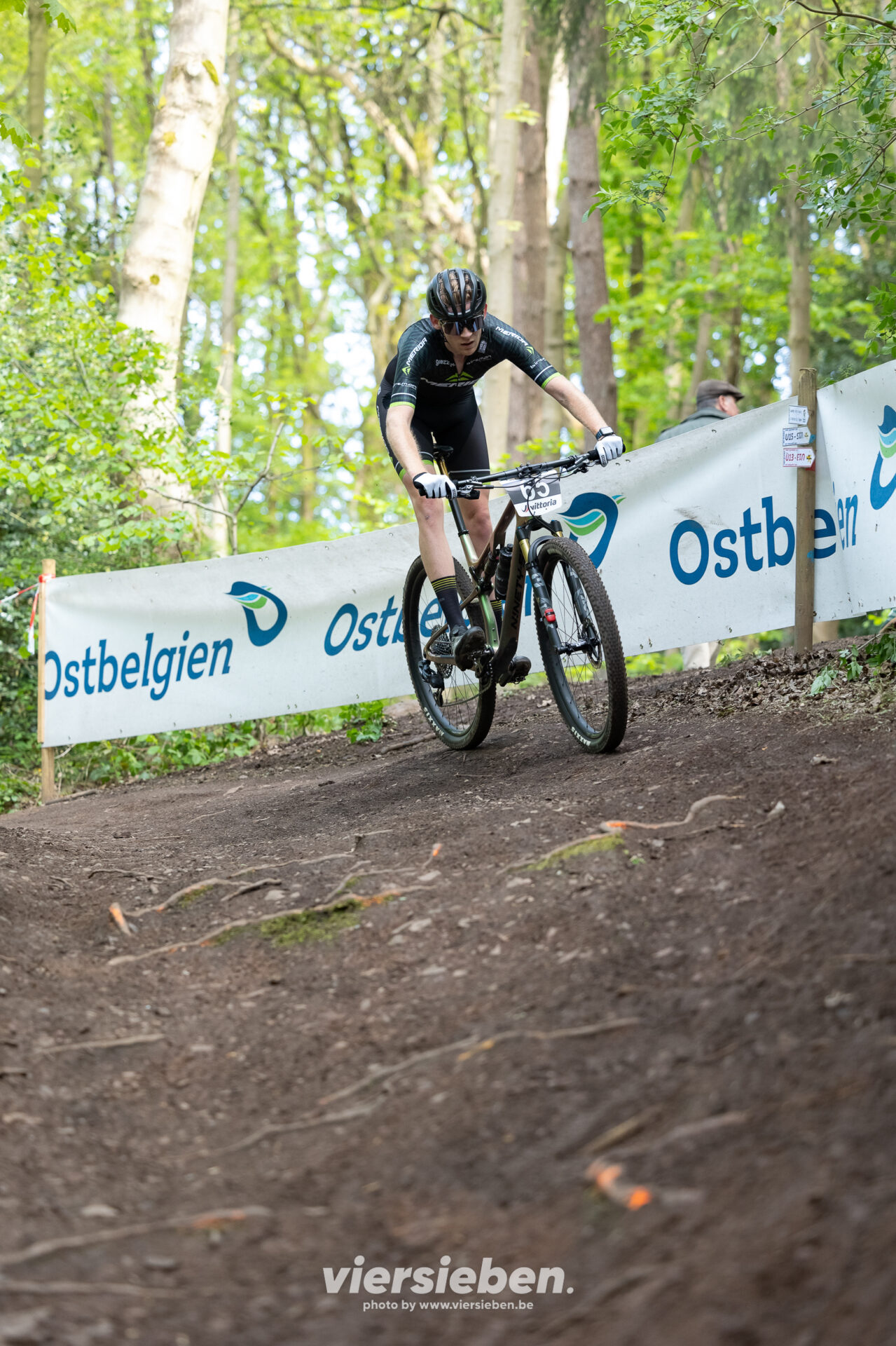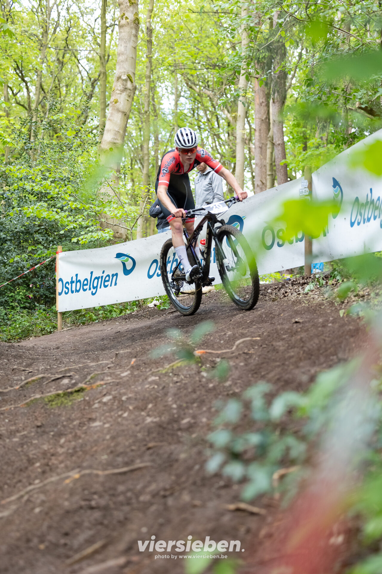 Das Wochenende stand ganz im Zeichen des Mountainbike-Downhills. Auf der anspruchsvollen Strecke im Eupener Wald ging es rasant zur Sache: steile Passagen, enge Kurven, Wurzelteppiche und Sprünge verlangten den Fahrerinnen und Fahrern höchste Konzentration und fahrerisches Können ab.